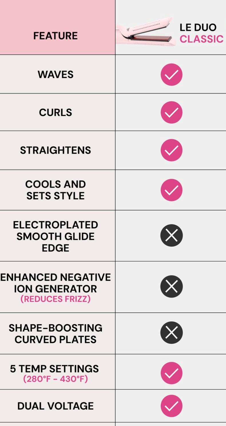 Get the best of both worlds with Le Duo Classic! The 360° Airflow Styler offers 1” floating titanium plates with beveled edges that make it easy to both curl and straighten your hair. This lightweight, ergonomic tool features an easy-to-use barrel clip and built-in cooling fans to instantly set your style. Enjoy shiny, beautiful, long-lasting results—sleek, straight styles or bold, bouncy curls in no time.