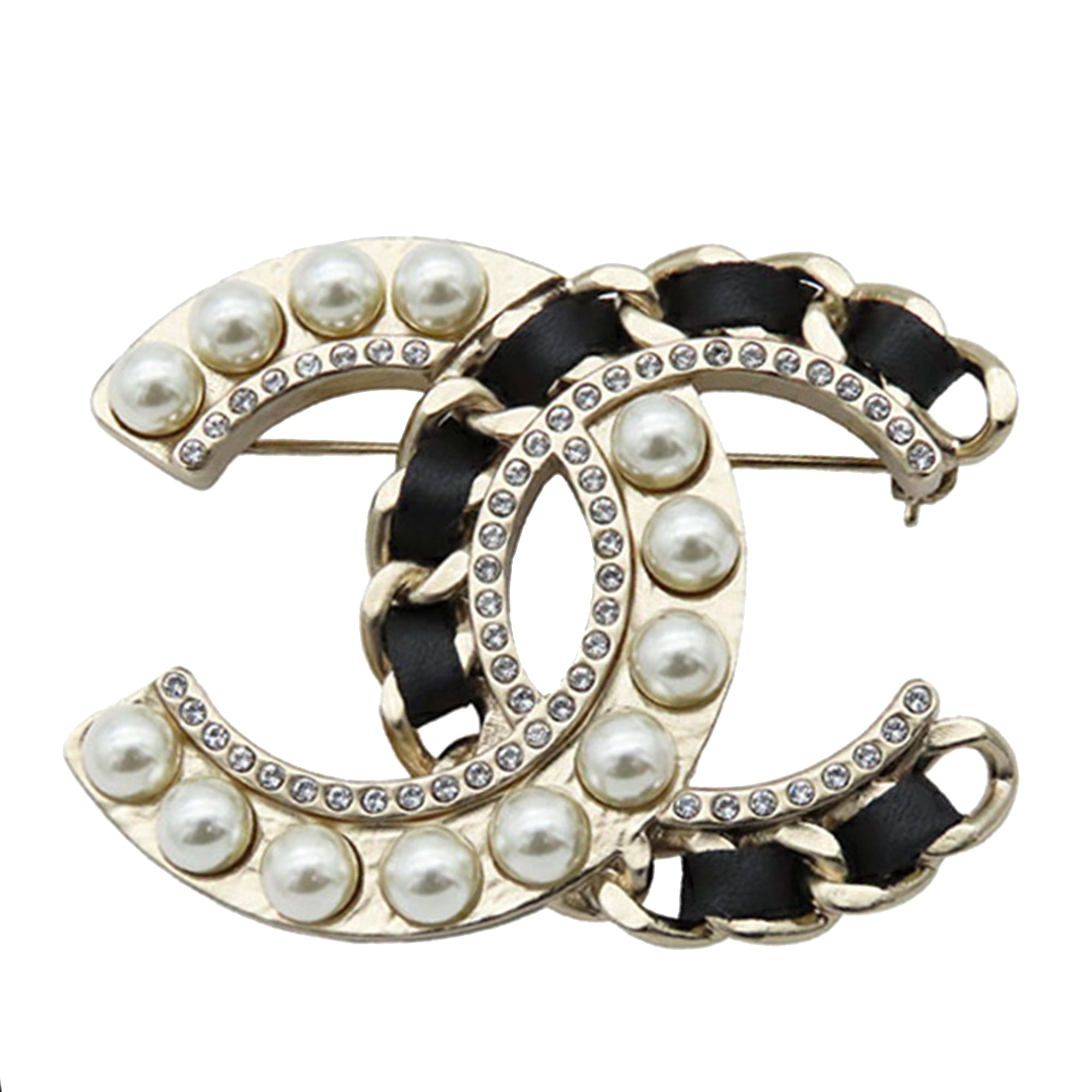 Style: Chanel CC Gold Plated Faux Pearl and Rhinestones Brooch Gold