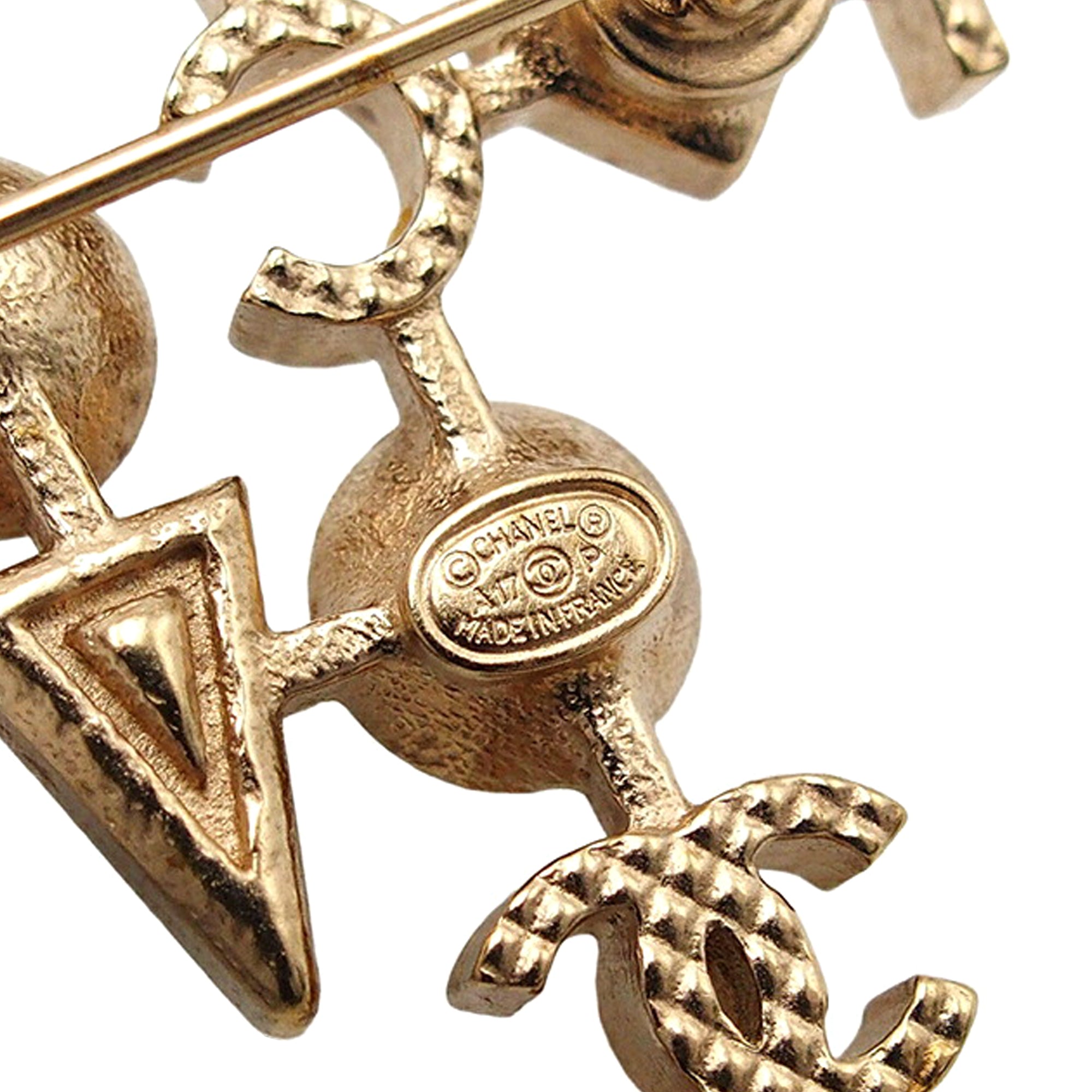 Style: Chanel CC Gold Plated Faux Pearl I Heart Coco Brooch Gold