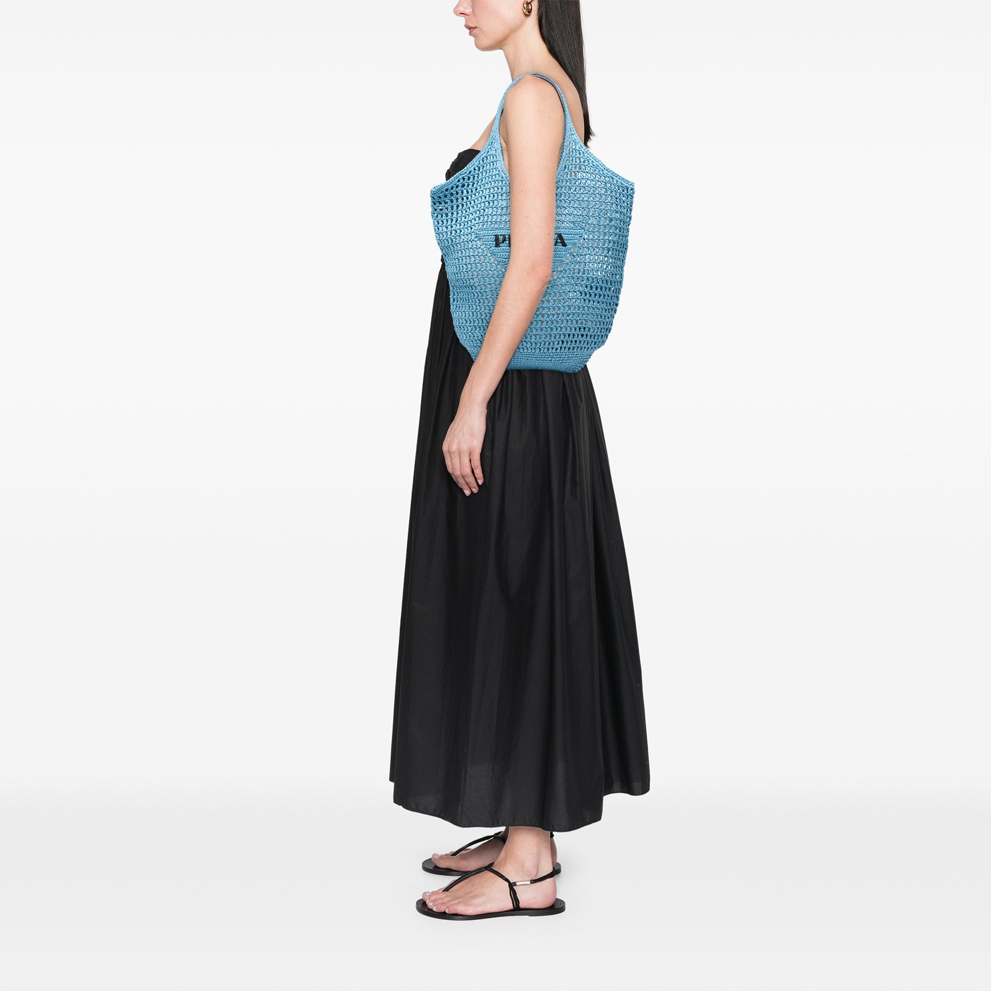 Style: Prada Raffia Effect Crochet Logo Embroidered Shopping Tote Blue
